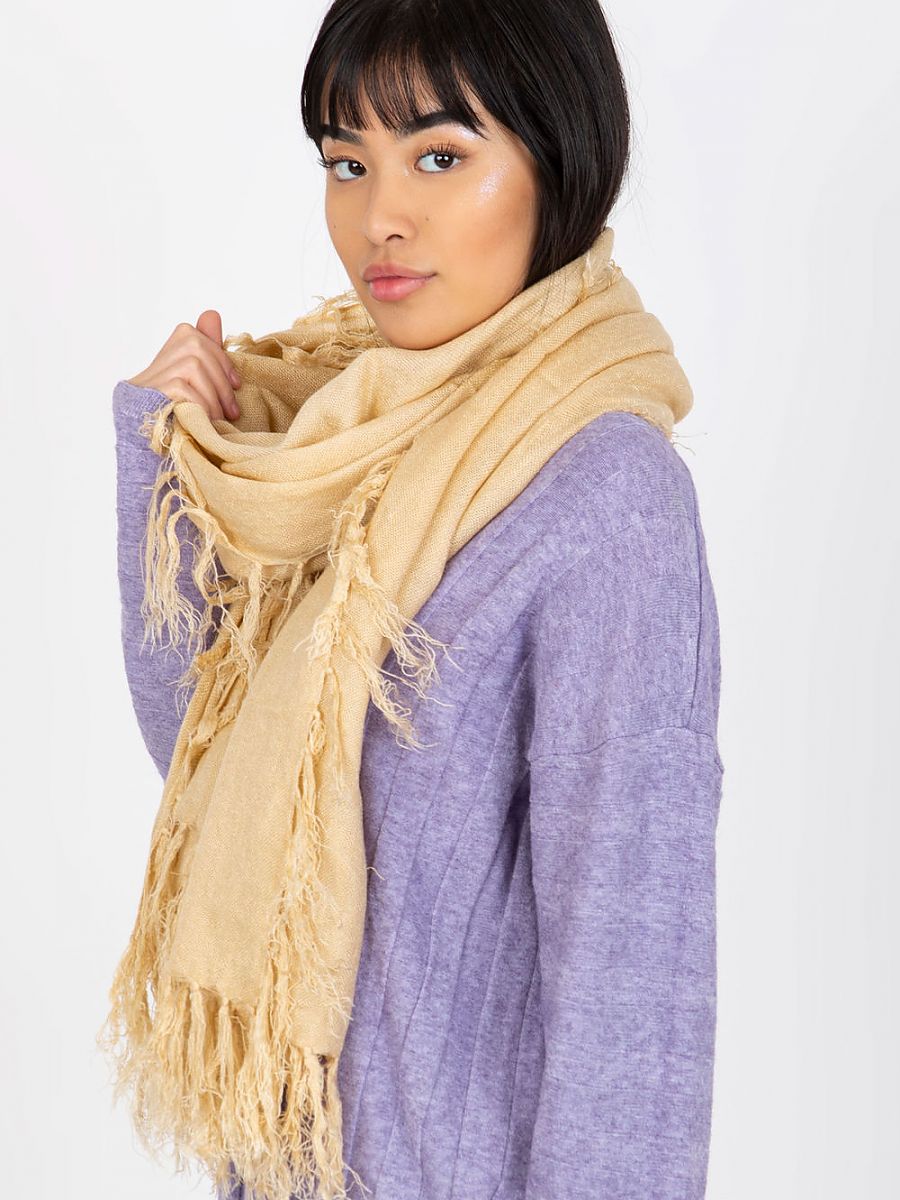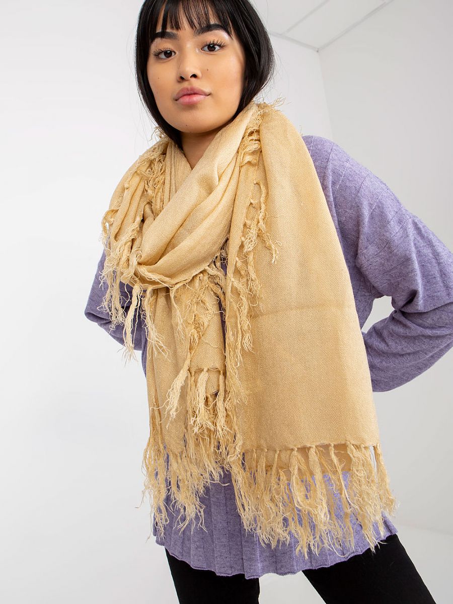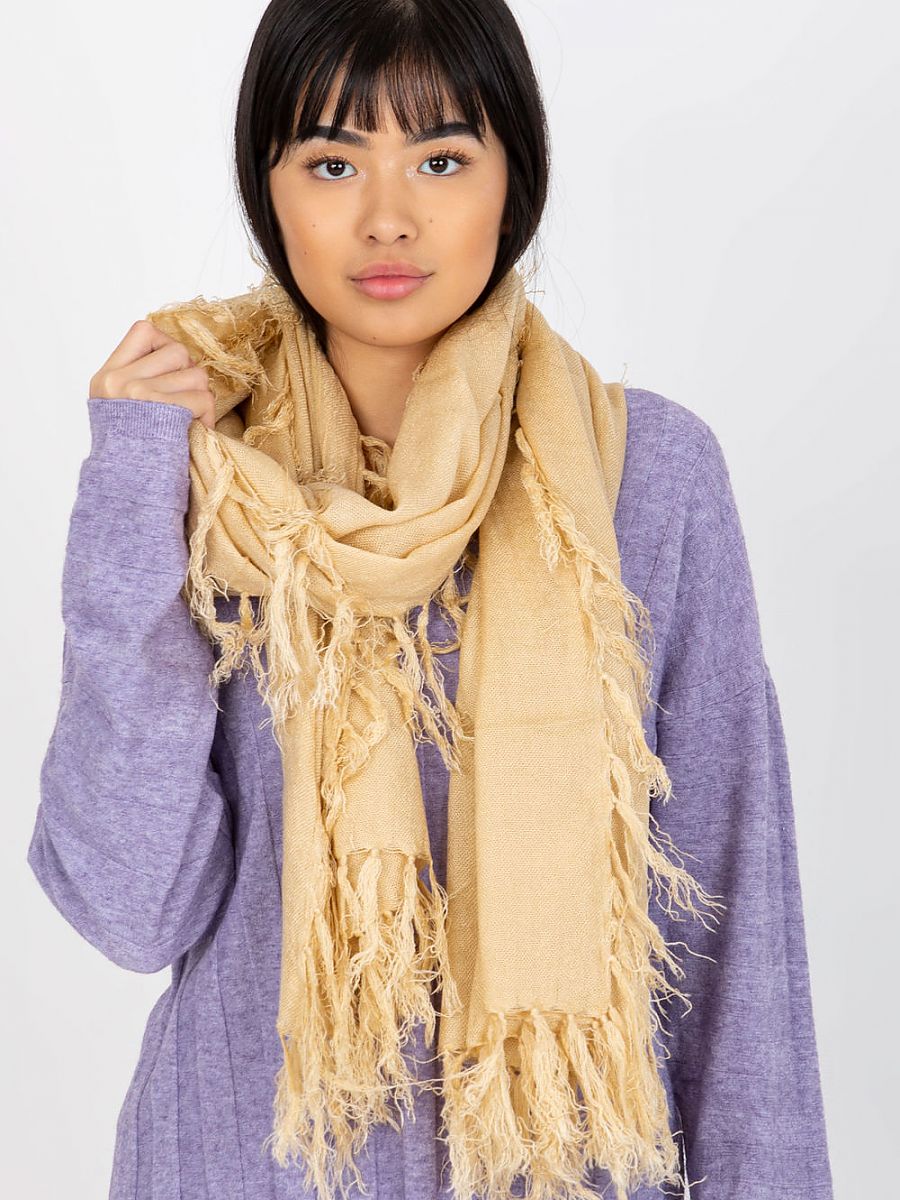 Ciepły damski szalik z frędzlami. Idealna propozycja do wielu stylizacji.