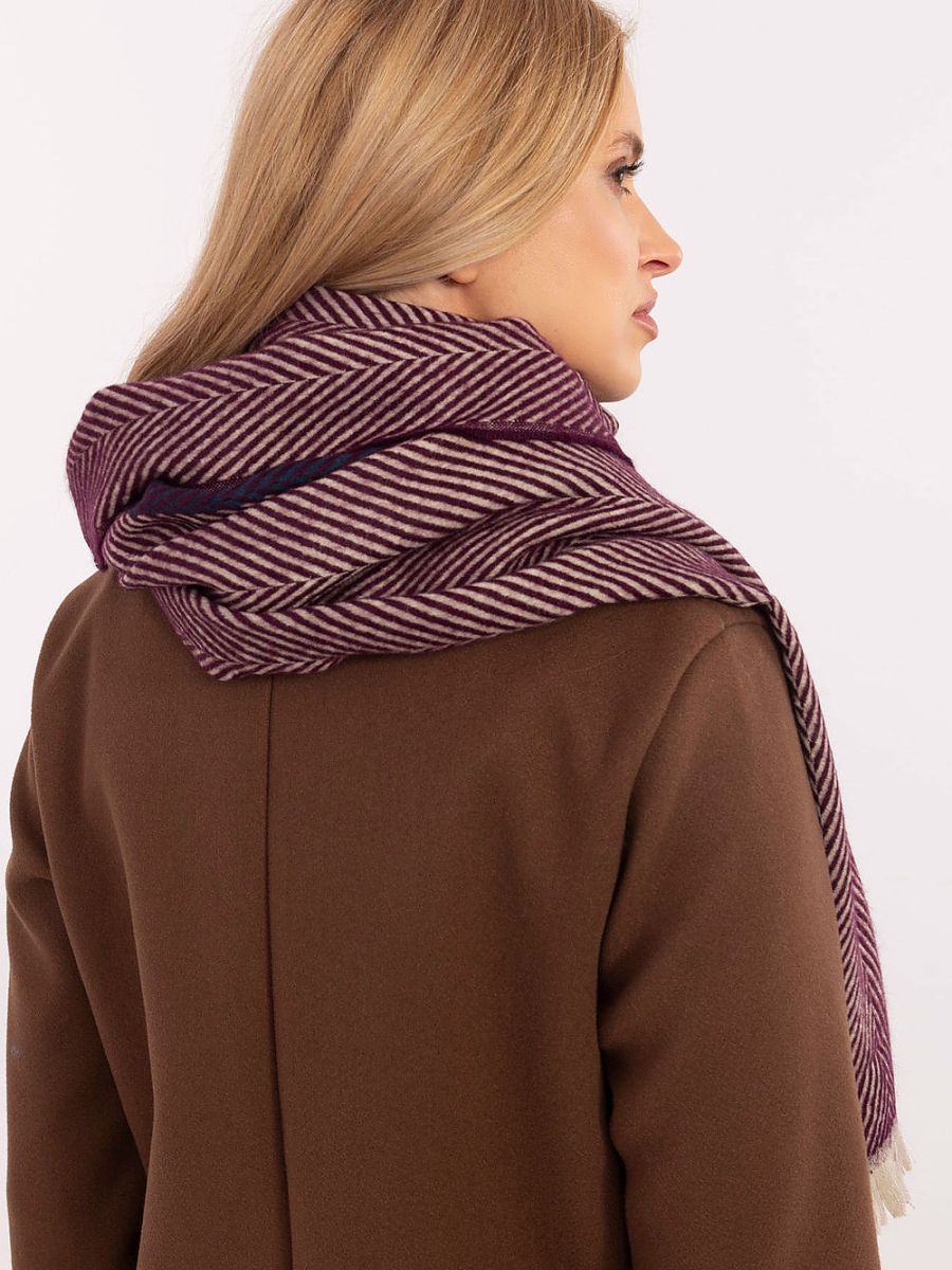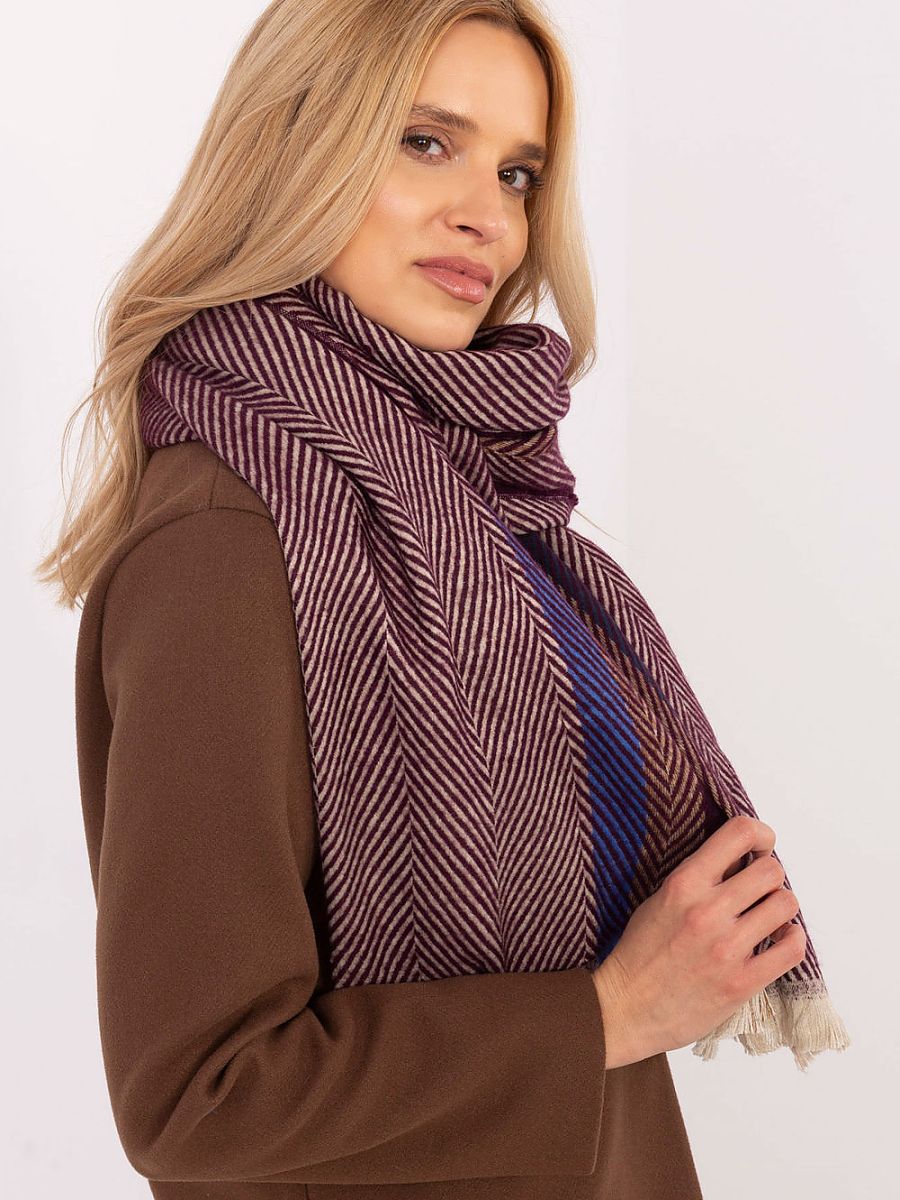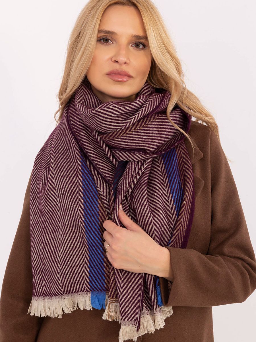 Stylowy zimowy szalik o długości 194 cm to idealny dodatek, który zapewni ciepło i modny wygląd w chłodne dni. Szalik wyróżnia się dominującym wzorem w paski, nadającym mu uniwersalny, ponadczasowy charakter, który doskonale uzupełni zarówno casualowe, jak i bardziej eleganckie stylizacje. Wykonany z wysokiej jakości wiskozy, szalik jest miękki, przyjemny w dotyku i delikatny dla skóry, zapewniając jednocześnie doskonałą ochronę przed zimnem. Frędzle na końcach dodają mu lekkości i oryginalności, czyniąc go modnym akcentem w każdej garderobie. To must-have na zimowe spacery, codzienne wyjścia czy chłodniejsze wieczory.