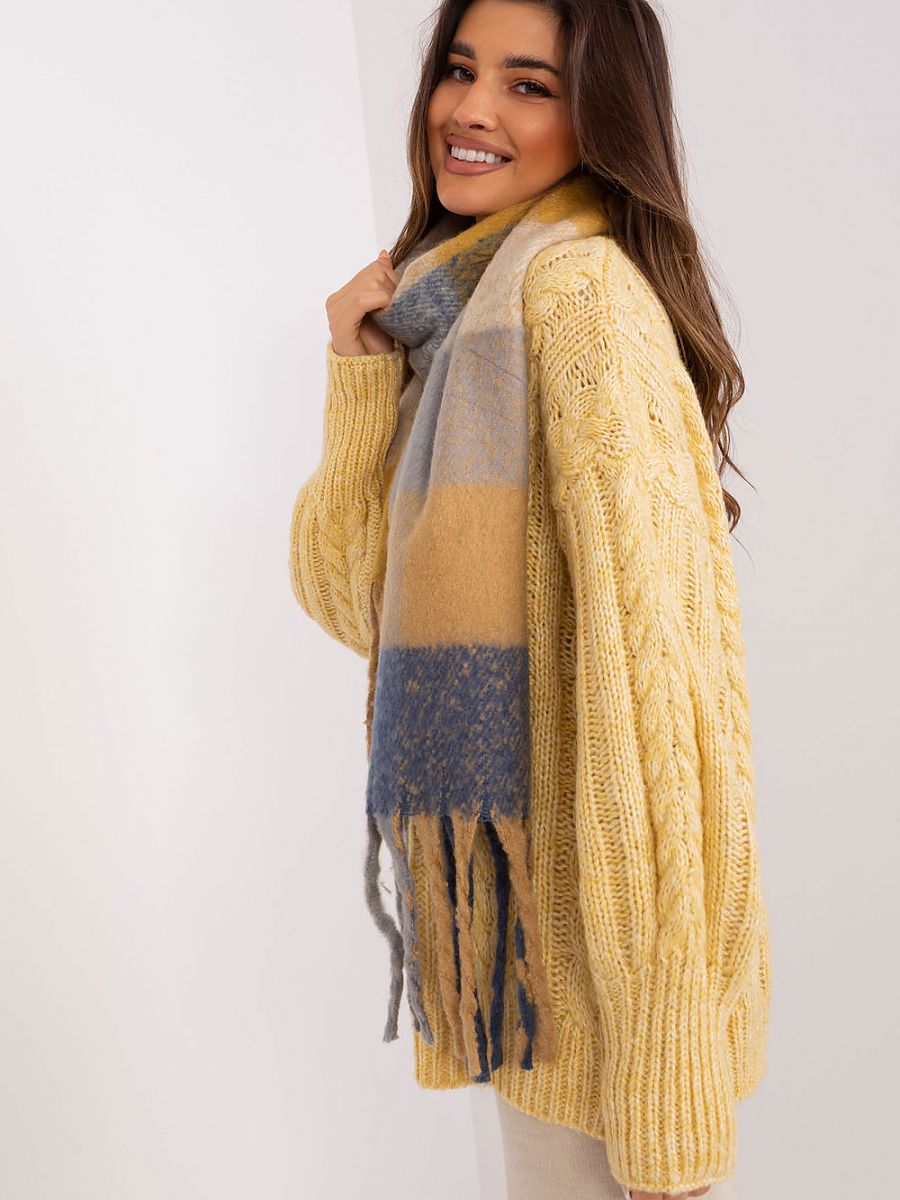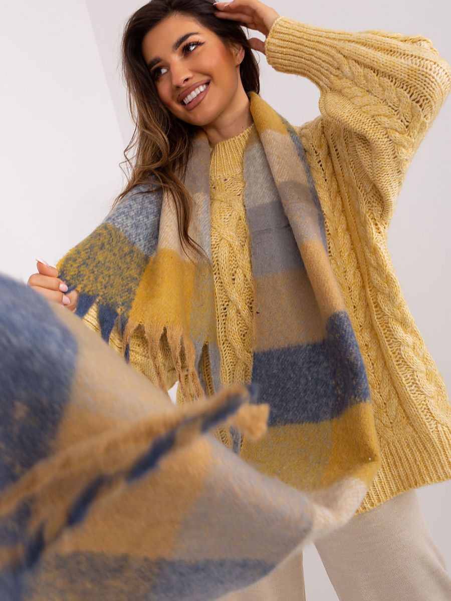 Ten długi szalik w kolorową kratę to doskonały dodatek do Twojej jesienno-zimowej garderoby. Wykonany z wytrzymałego poliestru, jest nie tylko praktyczny, ale także stylowy. Frędzle dodają mu subtelności i lekkości. Długość szalika pozwala na różnorodne sposoby jego noszenia, możesz go owijać wokół szyi, zostawić luźno opadający na ramiona lub użyć go jako dodatkowej warstwy w chłodniejsze dni. Niezależnie od tego, jak go nosisz, ten szalik będzie stylowym uzupełnieniem Twojej garderoby, dodając charakteru i ciepła.