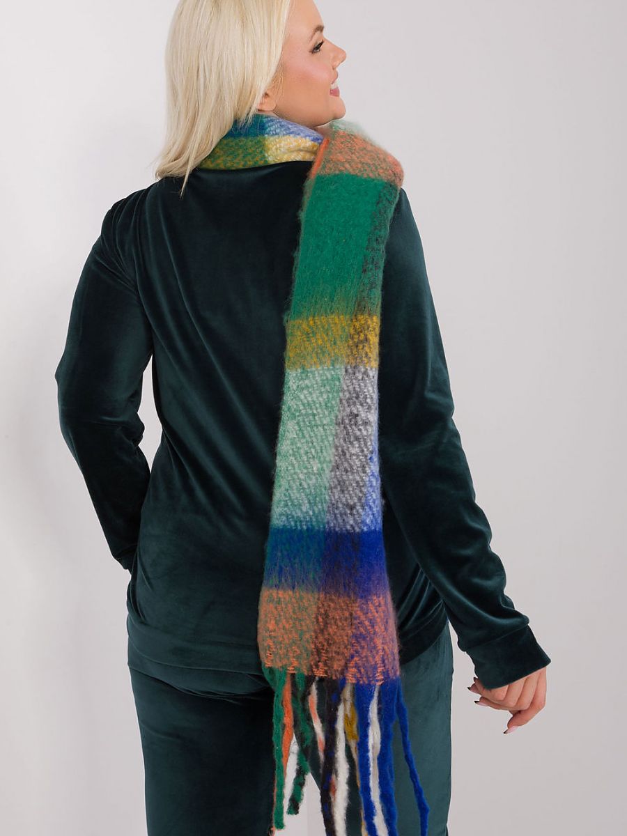 Ten długi szalik w kolorową kratę to doskonały dodatek do Twojej jesienno-zimowej garderoby. Wykonany z wytrzymałego poliestru, jest nie tylko praktyczny, ale także stylowy. Frędzle dodają mu subtelności i lekkości. Długość szalika pozwala na różnorodne sposoby jego noszenia, możesz go owijać wokół szyi, zostawić luźno opadający na ramiona lub użyć go jako dodatkowej warstwy w chłodniejsze dni. Niezależnie od tego, jak go nosisz, ten szalik będzie stylowym uzupełnieniem Twojej garderoby, dodając charakteru i ciepła.
