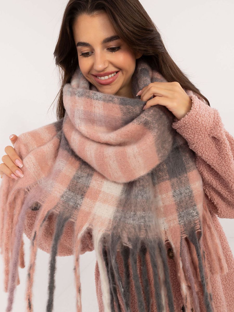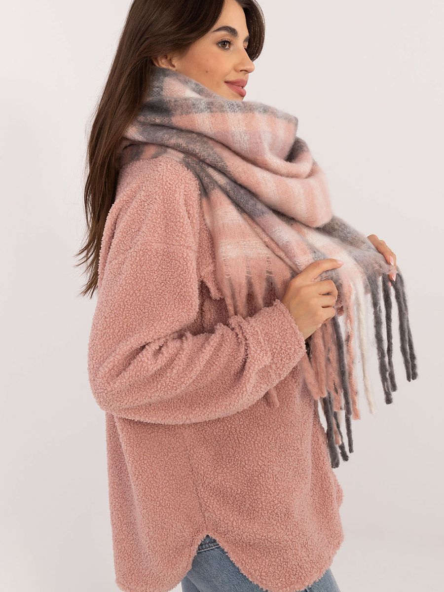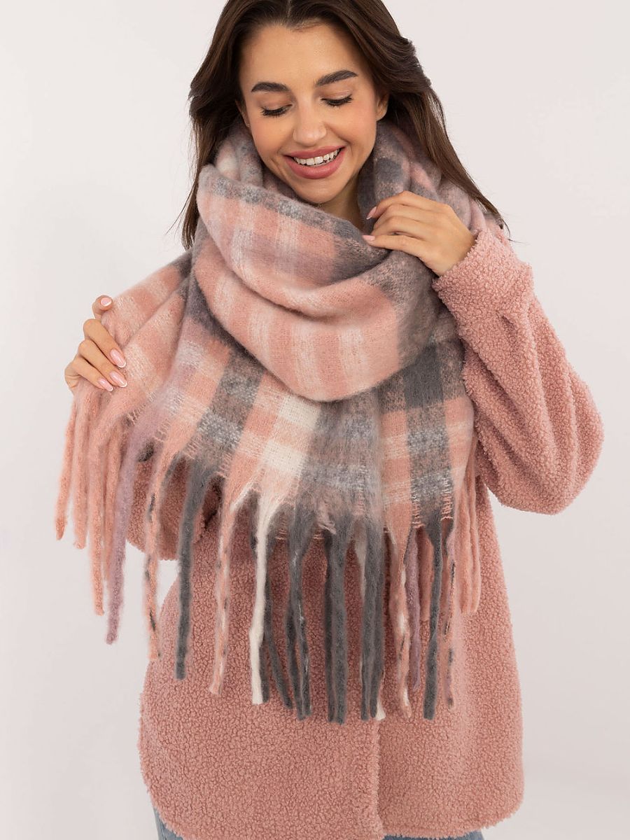 Elegancki szalik o długości 186 cm z poliestru w klasyczny wzór kratki, idealny na chłodniejsze dni. Wykonany z wysokiej jakości materiału, zapewnia ciepło i komfort. Ozdobne frędzle dodają mu modnego, stylowego akcentu, który wzbogaca każdą zimową stylizację. Ten uniwersalny szalik łączy funkcjonalność z elegancją, sprawiając, że będzie doskonałym dodatkiem do wielu różnych outfitów.