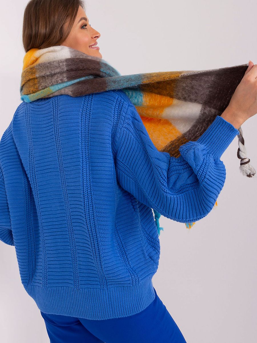 Ten długi szalik w kolorową kratę to doskonały dodatek do Twojej jesienno-zimowej garderoby. Wykonany z wytrzymałego poliestru, jest nie tylko praktyczny, ale także stylowy. Frędzle dodają mu subtelności i lekkości. Długość szalika pozwala na różnorodne sposoby jego noszenia, możesz go owijać wokół szyi, zostawić luźno opadający na ramiona lub użyć go jako dodatkowej warstwy w chłodniejsze dni. Niezależnie od tego, jak go nosisz, ten szalik będzie stylowym uzupełnieniem Twojej garderoby, dodając charakteru i ciepła.