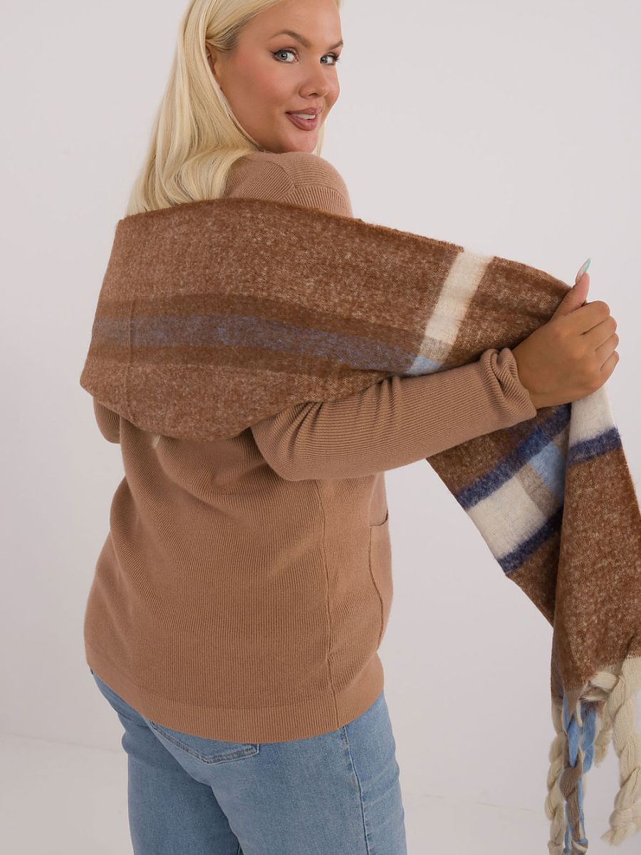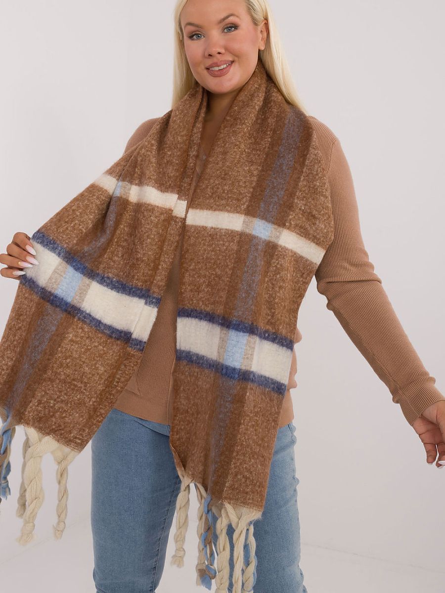 Elegancki szalik o długości 180 cm z poliestru we wzór kratki, idealny na chłodniejsze dni. Wykonany z wysokiej jakości materiału, zapewnia ciepło i komfort. Ozdobne frędzle dodają mu modnego, stylowego akcentu, który wzbogaca każdą zimową stylizację. Ten uniwersalny szalik łączy funkcjonalność z elegancją, sprawiając, że będzie doskonałym dodatkiem do wielu różnych outfitów.
