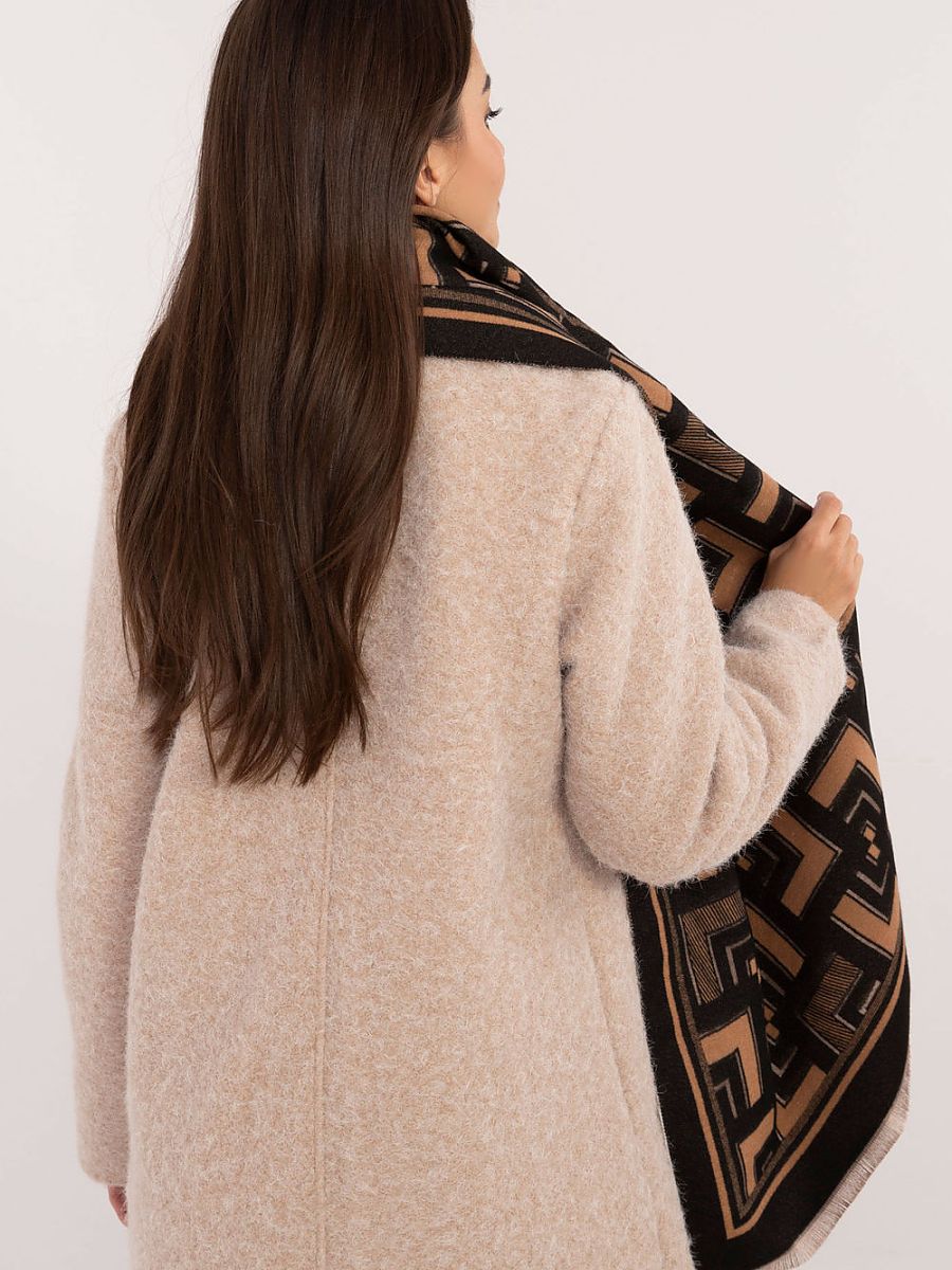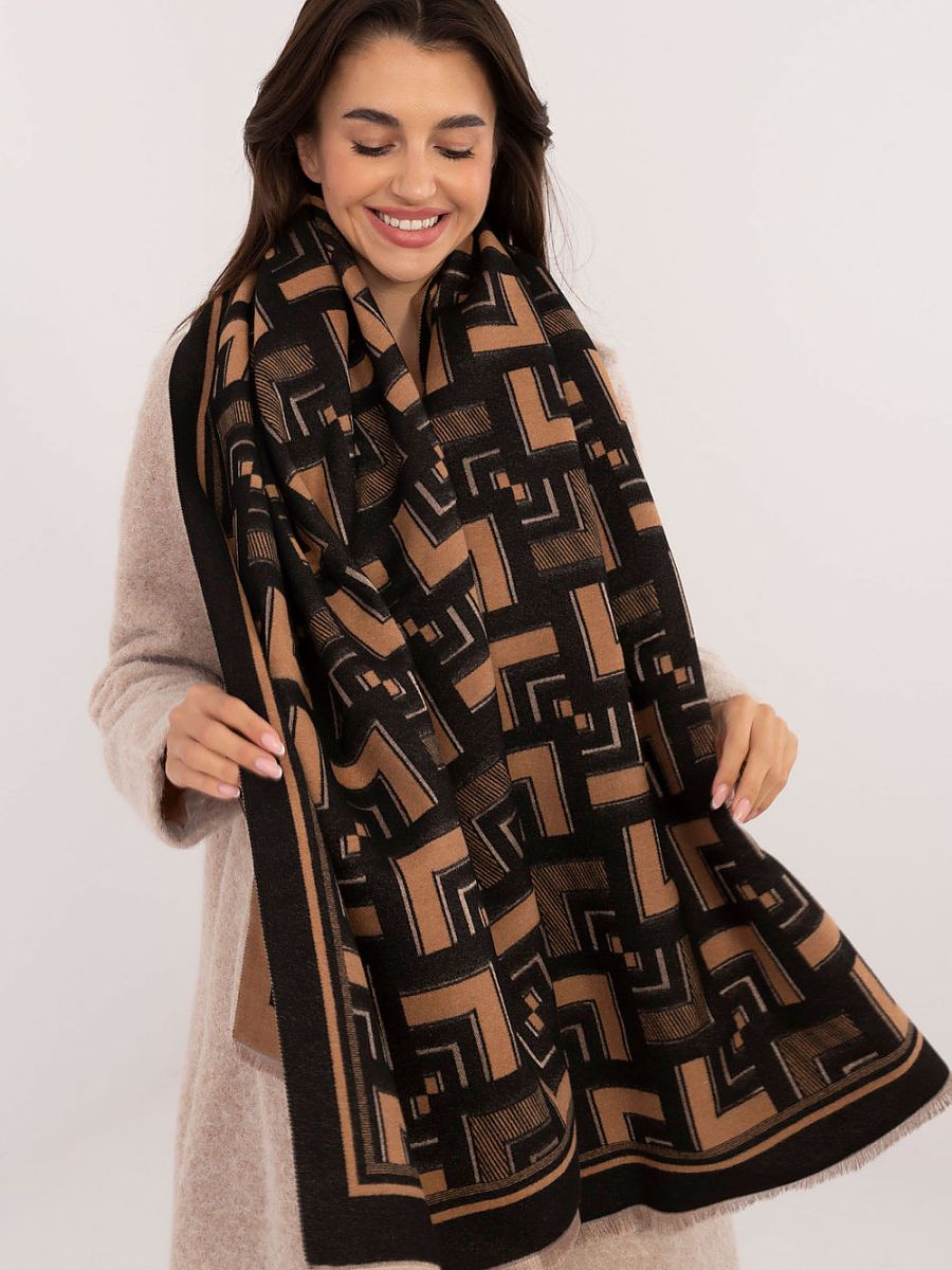 Stylowy szalik o długości 190 cm, wykonany z miękkiej i przyjemnej w dotyku wiskozy. Wyróżnia się geometrycznym wzorem, który dodaje nowoczesności i elegancji każdej stylizacji. Subtelne, małe frędzelki na końcach szalika nadają mu lekkości i oryginalności. Idealny na chłodniejsze dni, doskonale sprawdzi się zarówno w codziennych, jak i bardziej eleganckich zestawieniach.