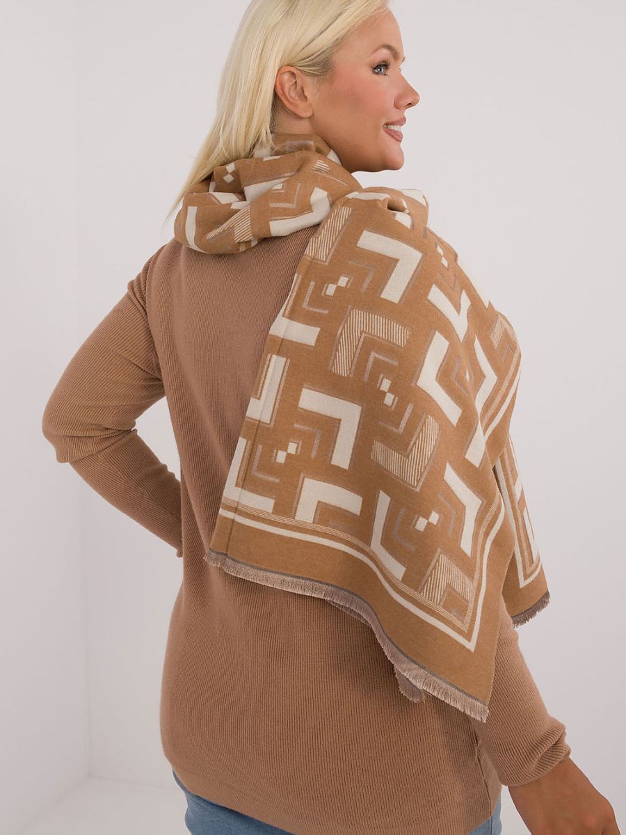 Stylowy szalik o długości 190 cm, wykonany z miękkiej i przyjemnej w dotyku wiskozy. Wyróżnia się geometrycznym wzorem, który dodaje nowoczesności i elegancji każdej stylizacji. Subtelne, małe frędzelki na końcach szalika nadają mu lekkości i oryginalności. Idealny na chłodniejsze dni, doskonale sprawdzi się zarówno w codziennych, jak i bardziej eleganckich zestawieniach.