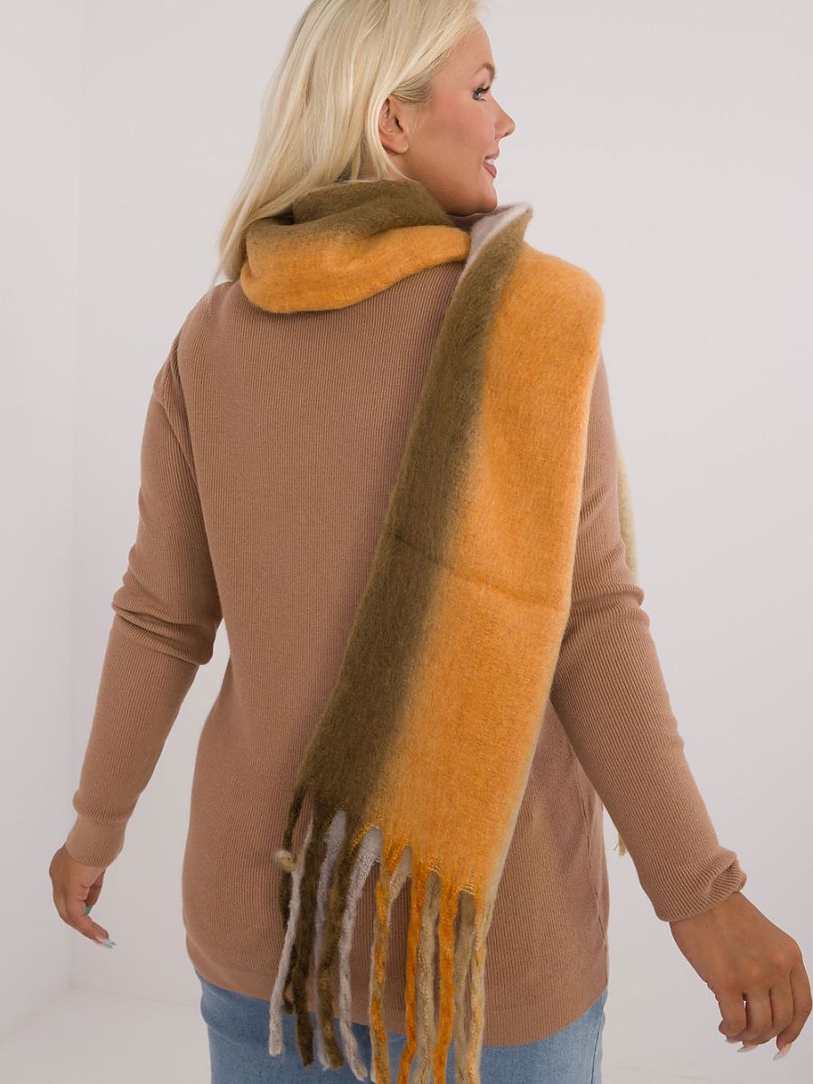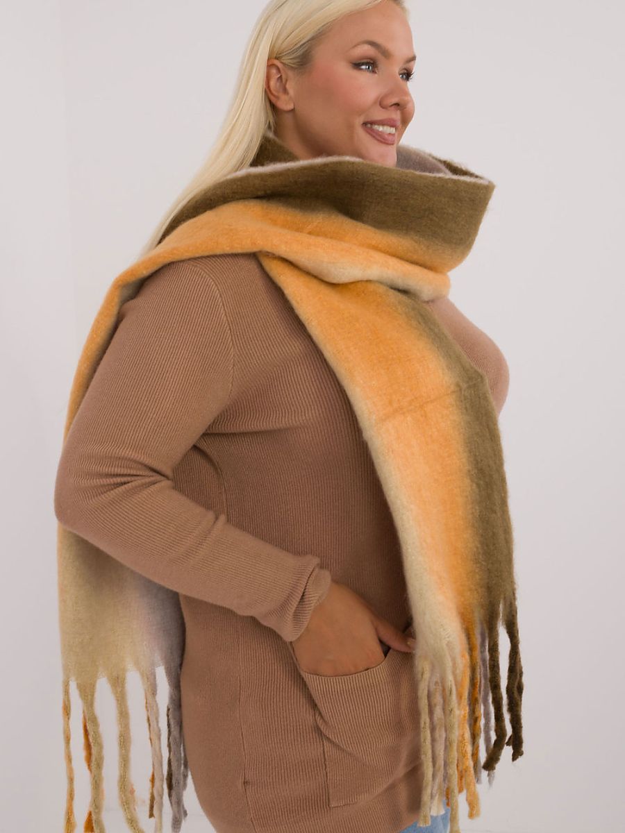 Stylowy szalik wykonany z wysokiej jakości poliestru o długości 194 cm, o gładkim kolorowym wzorze, który dodaje elegancji i nowoczesności każdej stylizacji. Wykonany z lekkiego, ale ciepłego materiału, zapewnia komfort i ochronę przed chłodem. Ozdobne frędzle na końcach dodają mu modnego, wyrazistego akcentu, który świetnie uzupełnia zarówno casualowe, jak i bardziej eleganckie outfity. Idealny na sezon jesienno-zimowy, ten szalik łączy funkcjonalność z elegancją.