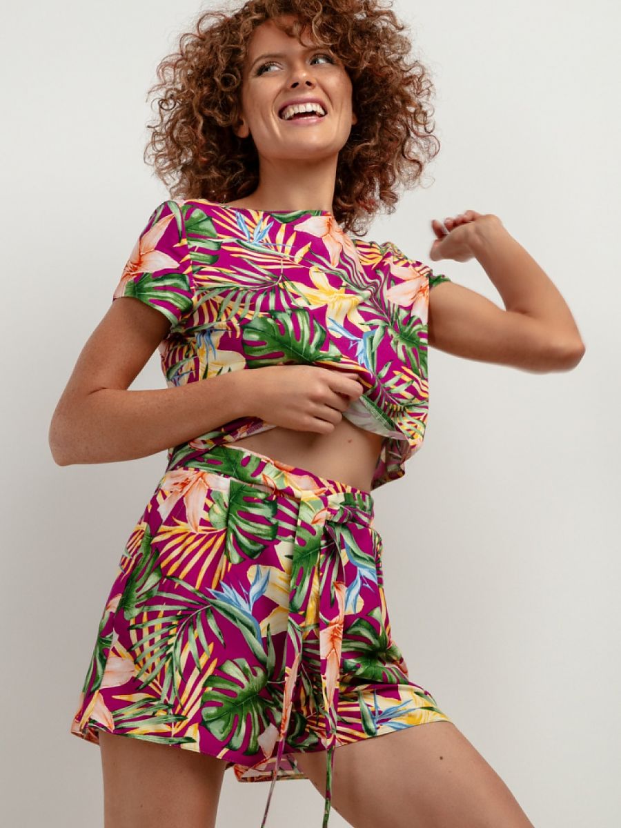 Szorty Damskie Model T411 Liście na fioletowym tle – Tessita