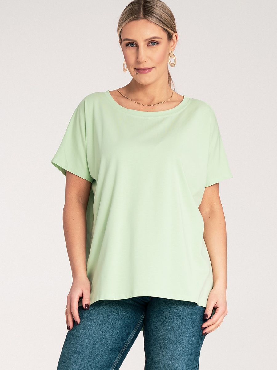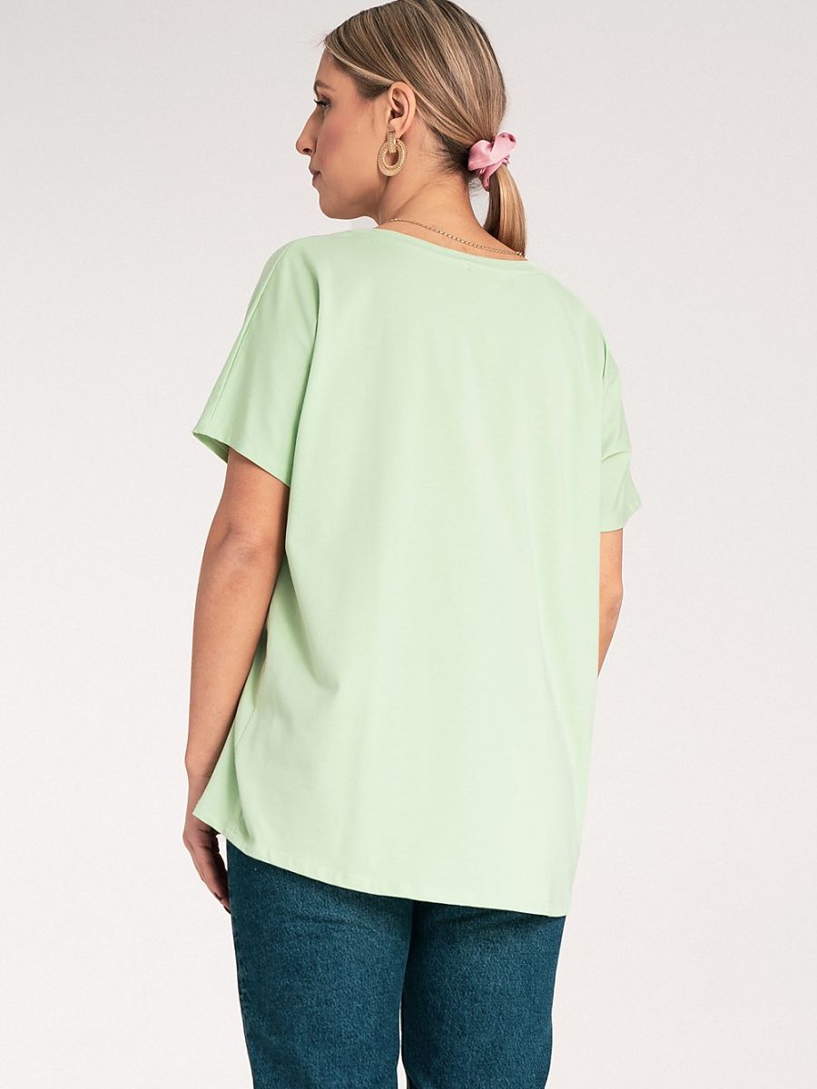 T-shirt damski z krótkim rękawem oraz okrągłym dekoltem.