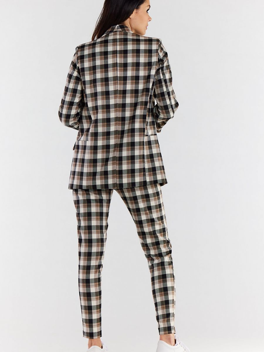 Stylowy żakiet o miejskim kroju. Uszyty z tkaniny w modną kratę. bardzo miłej w dotyku. Świetnie wygląda w komplecie ze spodniami A492. Będzie pasować nie tylko do eleganckich, ale także codziennych stylizacji. Żakiet jest na podszewce. Zaprojektowano i uszyto w Polsce.